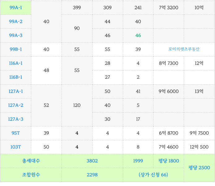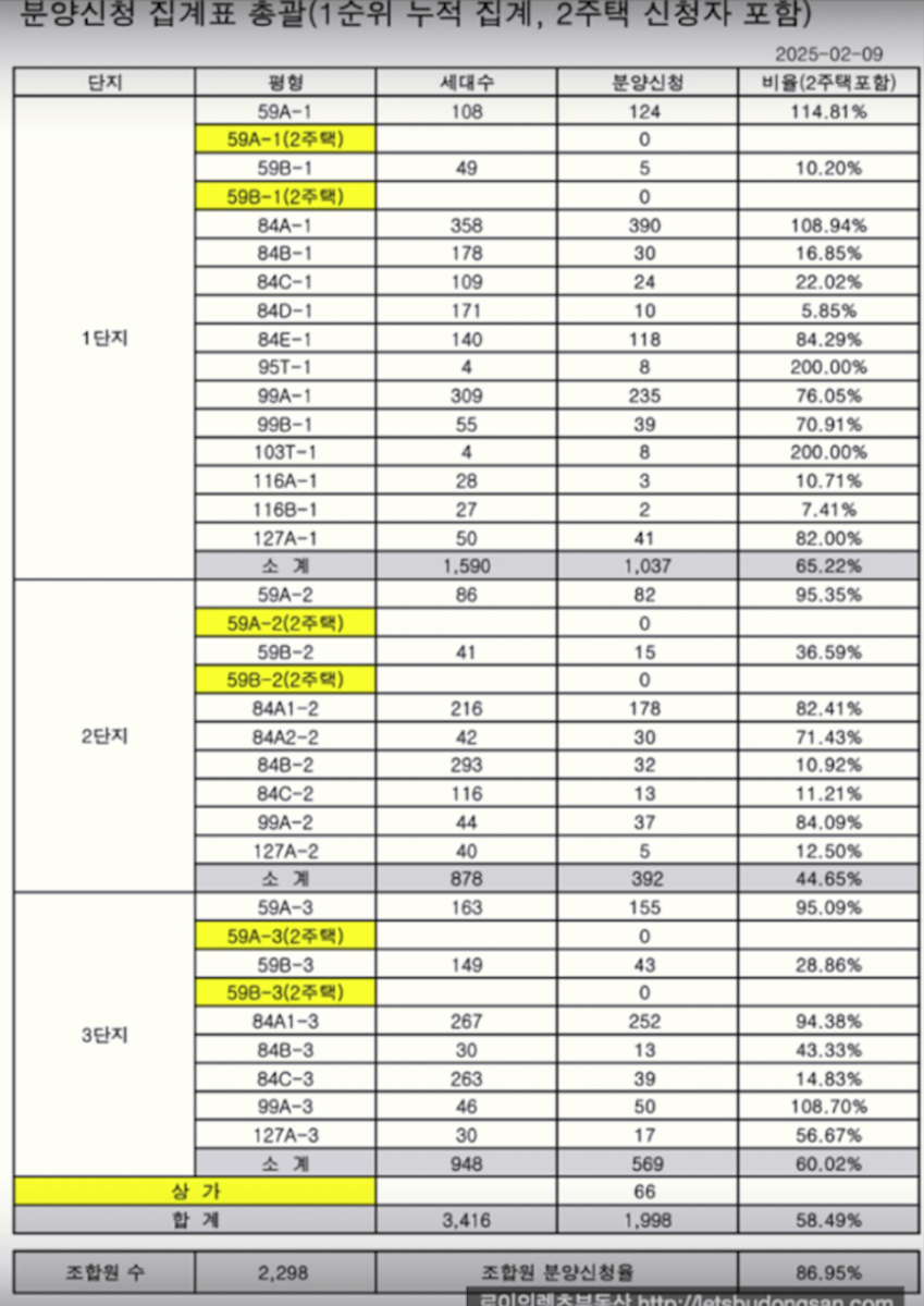 전체 조합원수는 2298, 분양신청한 세대는 1999세대 입니다.