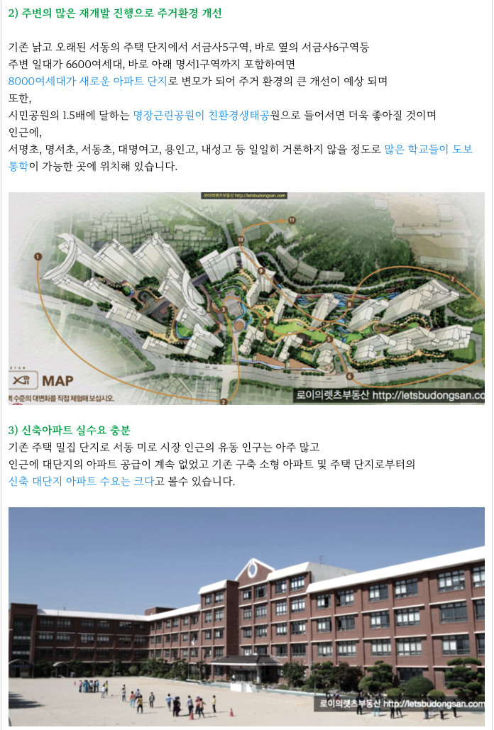 구역 규모가 크지만 구역 하단부에서 도보 3~5분여 서동역 역세권이며