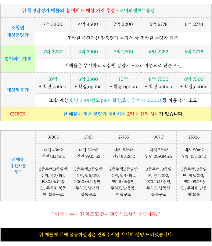 다수의 조합원 분들이 실망하고 무피, 마피, 소액피로 매물을 내놓으신 상황 입니다.