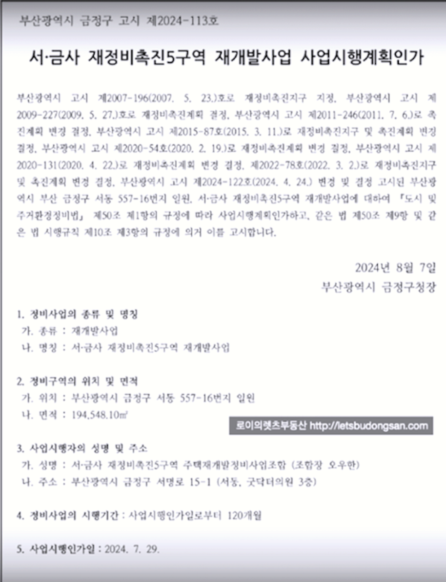 서금사5구역 재개발 은
