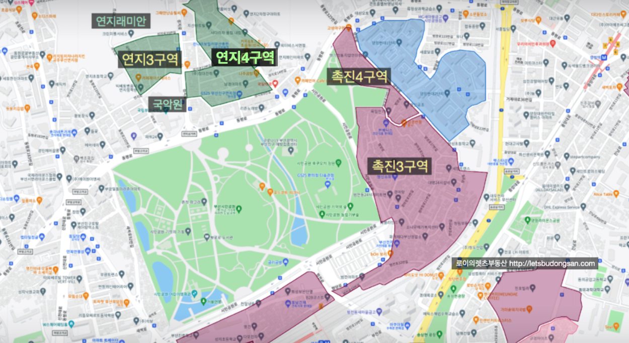 시민공원 촉진1~4구역 그리고 연지3, 4구역까지
