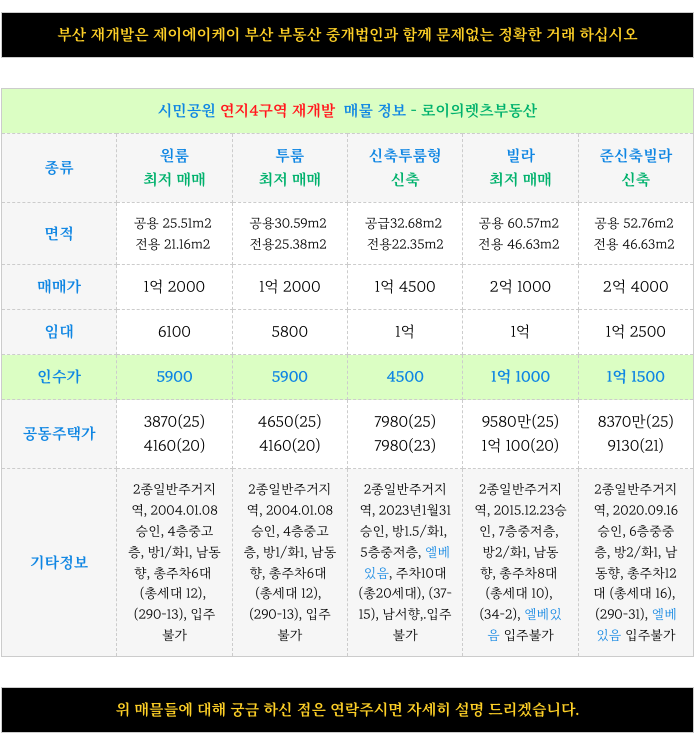 부산 전역 재개발에 대해 궁금하신 사항은 방문 또는 연락주시면 자세히 설명 드리겠습니다.