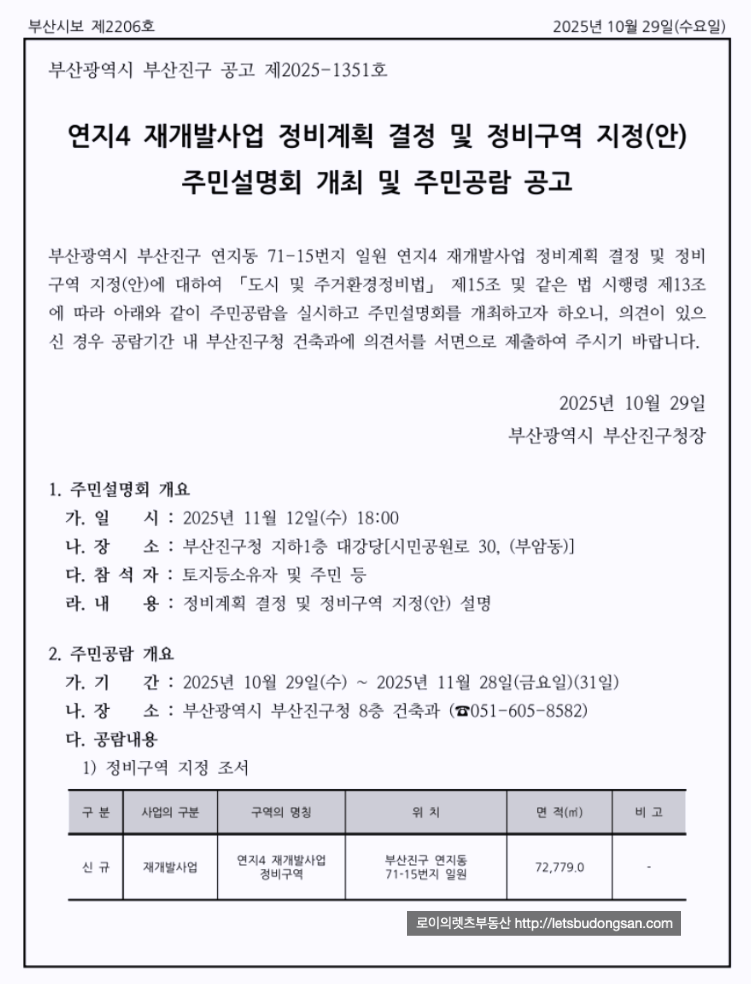연지4구역 재개발 : 구역 지정 임박, 일정, 절차 + 소액 매물