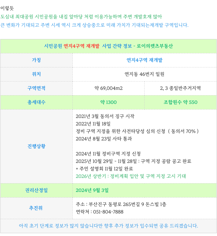 연지4구역 재개발 : 추가 적인 정보는 아래 페이지를 참고 부탁드립니다.