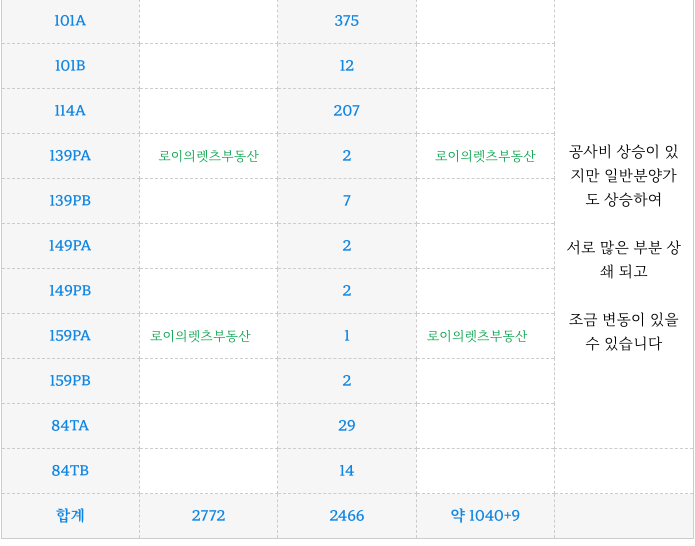 84타입 이상을 대폭으로 늘리는 설계 변경을 진행하였고 사시변경인가도 득하여