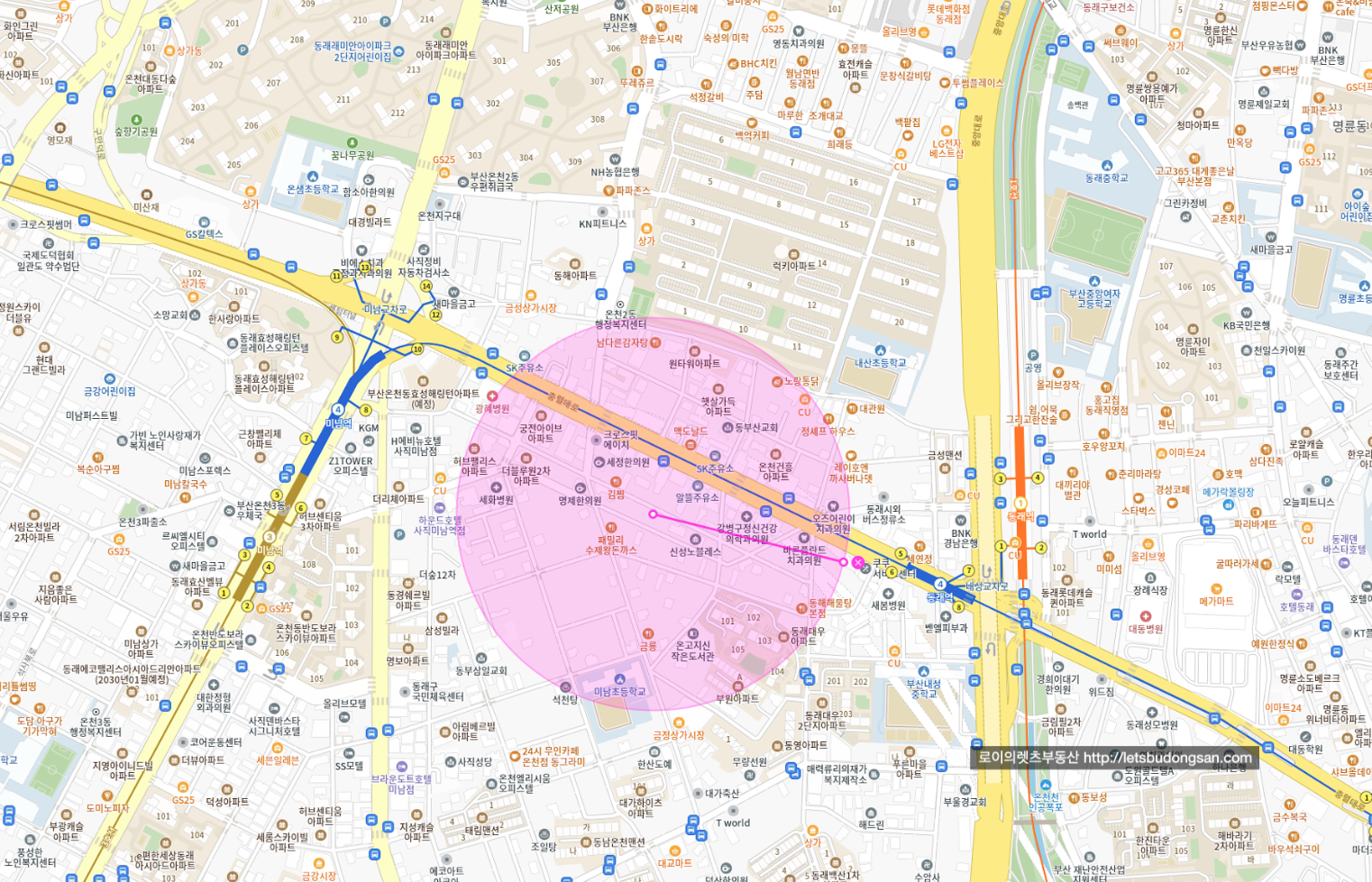 부산 지하철 1호선, 3호선, 4호선 모두 이용가능하여 전반적으로 교통적 환경이 아주 좋습니다.