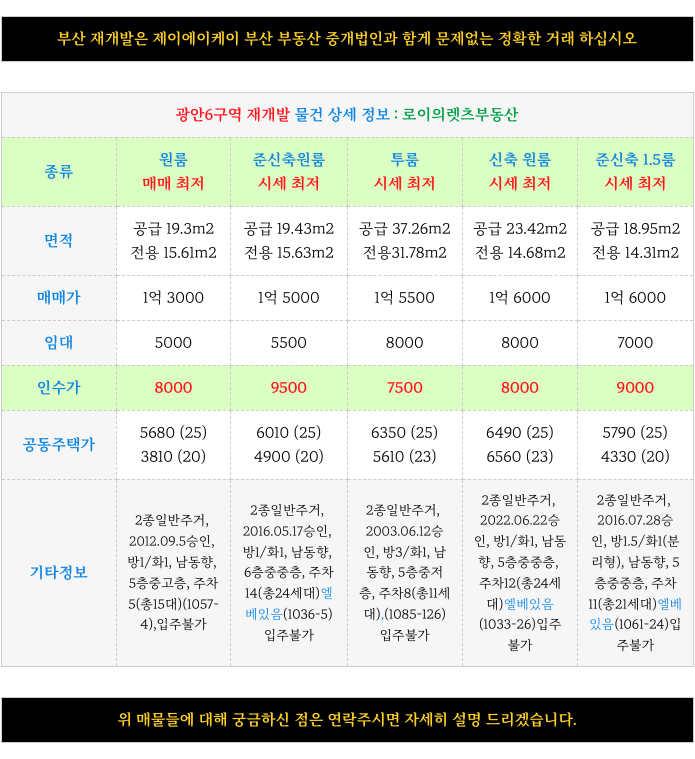 1. 광안6구역 재개발 : 소액 매물 소개 :