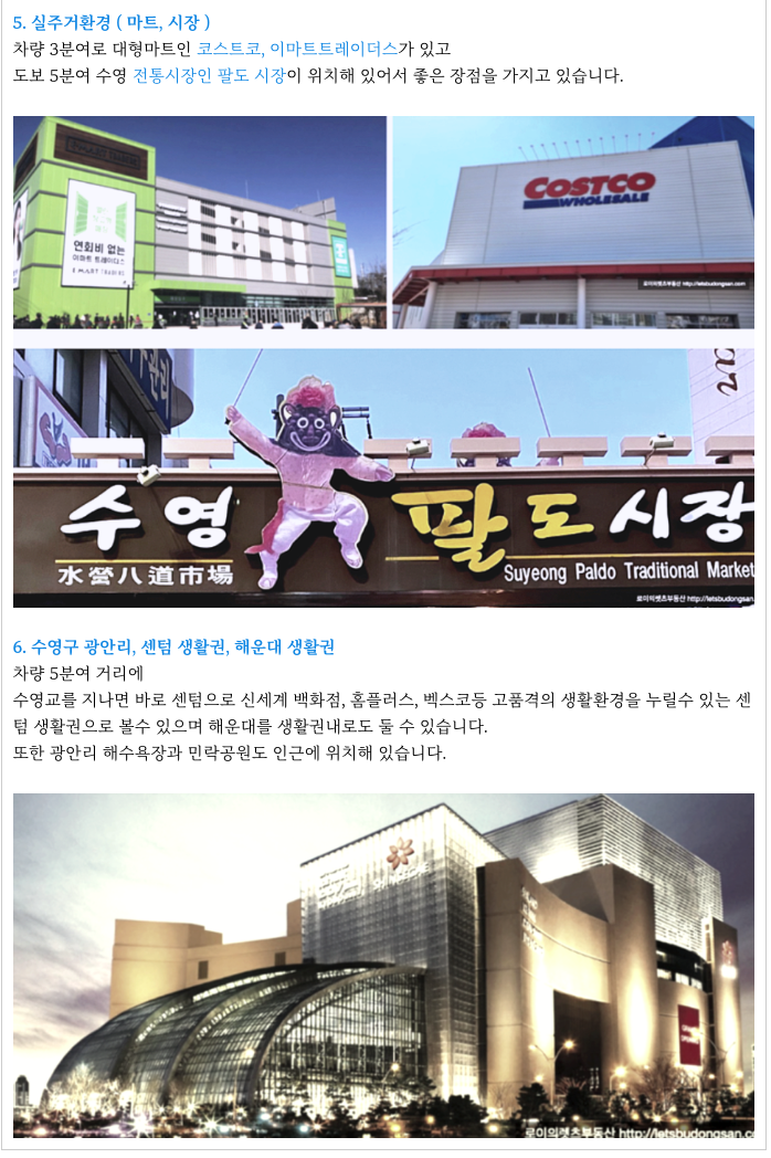 - 수영로를 통해서는 해운대, 센텀지구 등으로 불과 5분이면 접근 가능하며