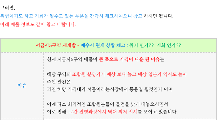 1. 서금사5구역 재개발 : 현 매수 시점, 가격 체크 :