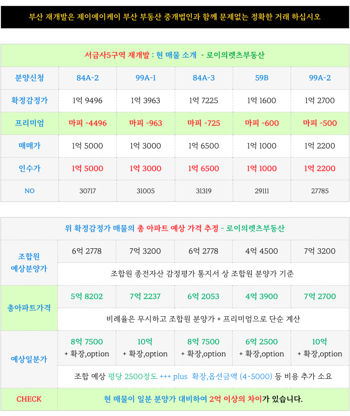 2. 서금사5구역 재개발 : 마피 급매 매물 소개 :