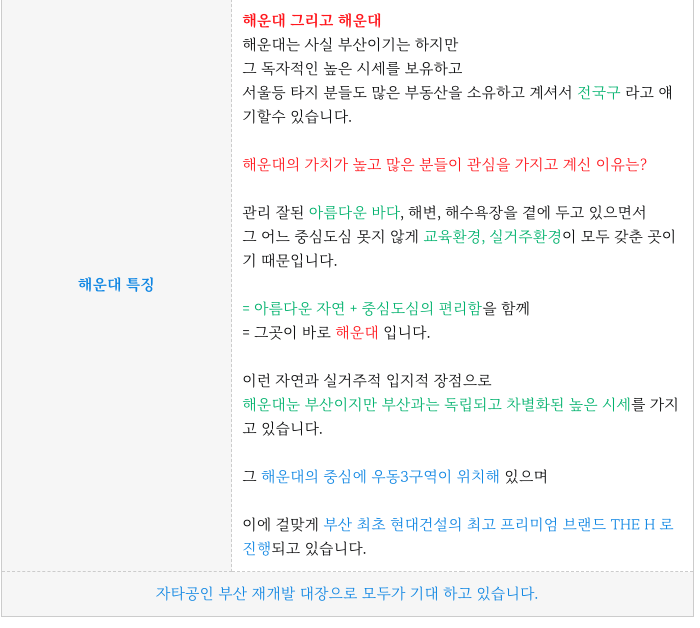 부산의 특별한 해운대, 그 중심 우동에 위치한 자타공인 부산 재개발 대장주로