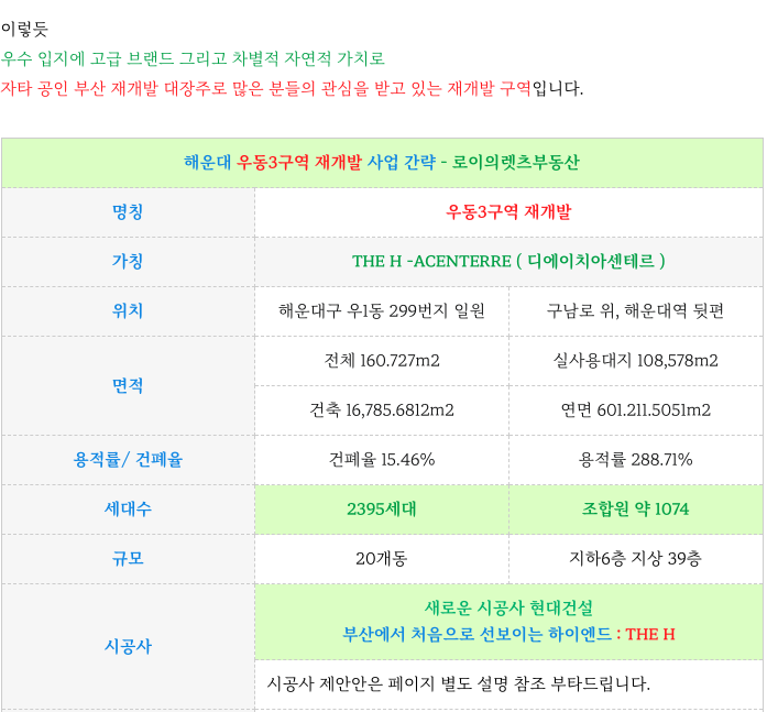 해운대 우동3구역 재개발 : 매물 정보 업데이트