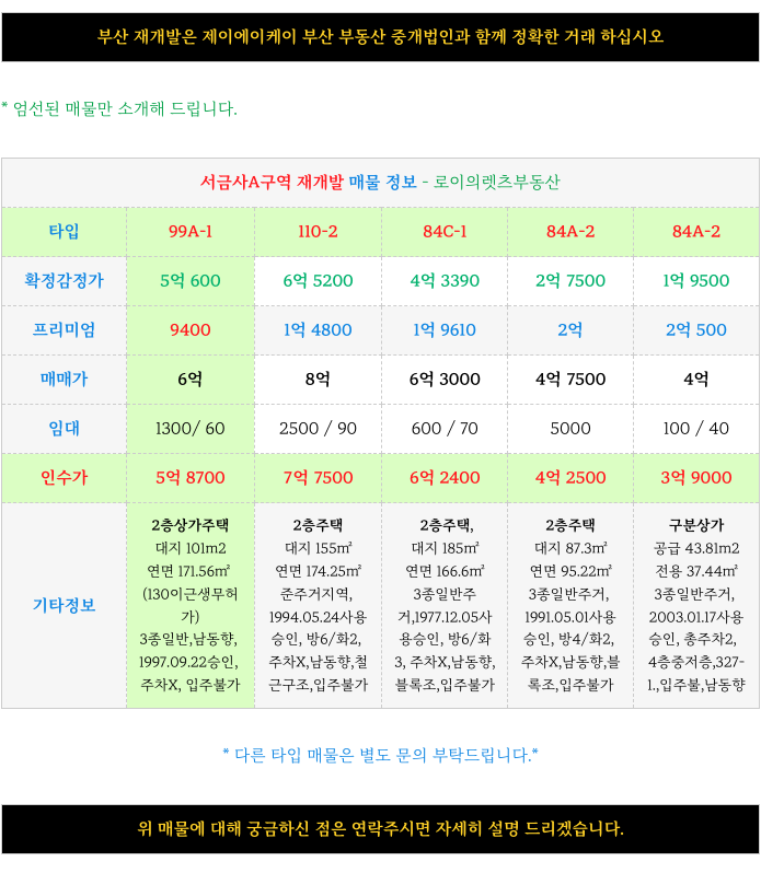 1. 궁금하실 급매 99A등 매물 소개 : 서금사A구역 재개발 :