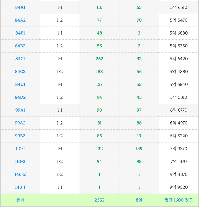 3. 타입별 세대수 및 분양가 체크 : 서금사A구역 재개발 :