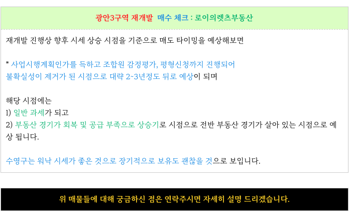 1. 광안3구역 재개발 : 급매 빌라등 매물 소개 :