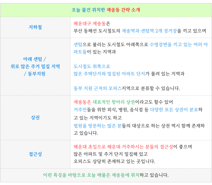 해운대구 재송동에 대해 간략 설명 드리겠습니다.
