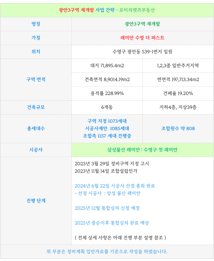 3. 광안3구역 재개발 : 구역의 추가적인 설명은 아래 페이지 참고 부탁드립니다. :