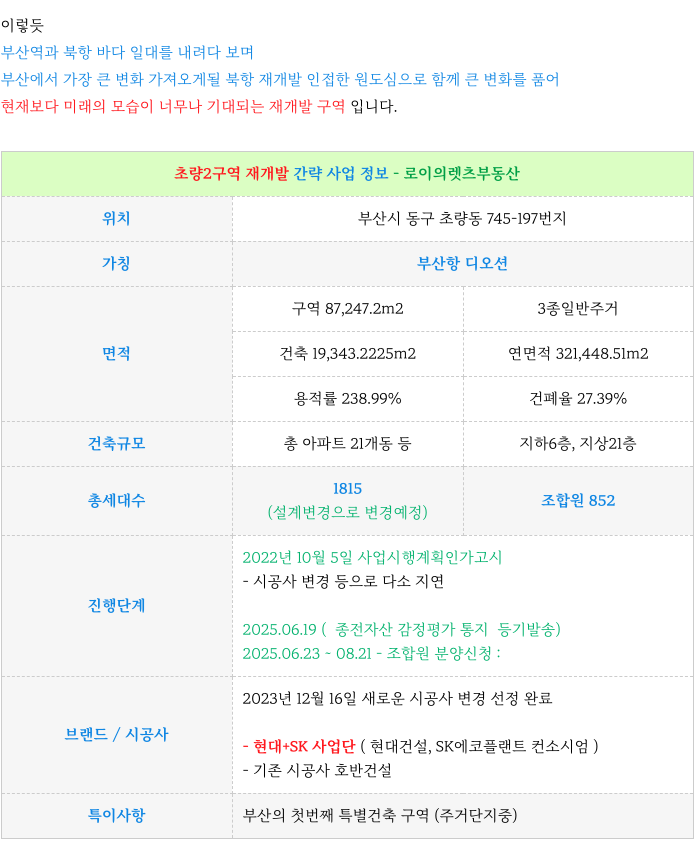 1. 초량2구역 재개발 : 재개발 사업 간략 요점 :