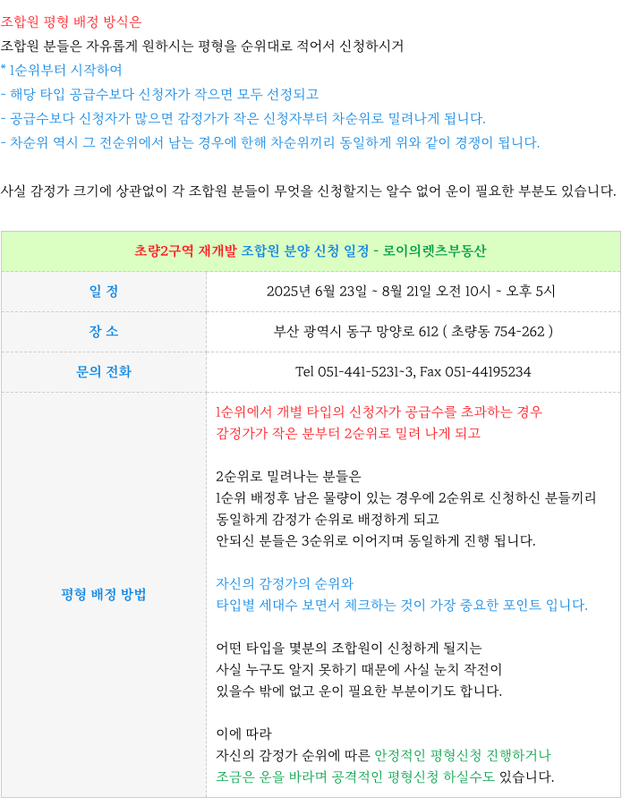 - 2025년 6월 23일 ~ 8월 21일 오전 10시 ~ 오후 5시 : 조합원 분양 신청 진행중