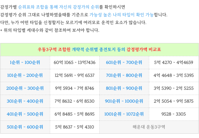 2) 나의 감정평가 순위 체크를 통한 당첨 확률 높은 타입 체크
