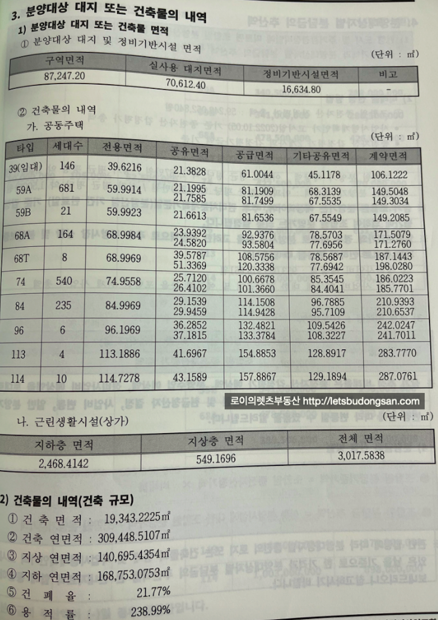 4. 타입별 세대수, 분양가 체크 : 우동3구역 재개발 :