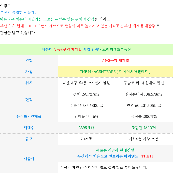 안녕하세요 로이의렛츠부동산 ( JAK 제이에이케이 부산 ) 입니다. 오늘은 해운대 해운대 우동3구역 재개...