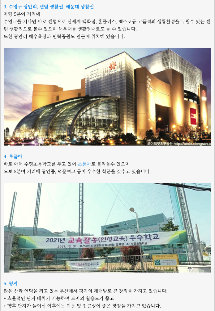 5. 광안3구역 재개발 : 재개발 사업 주요 특징 간략 재정리 :