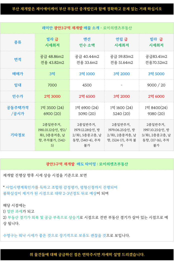 2. 광안3구역 재개발 : 現 최저 매물 소개 :