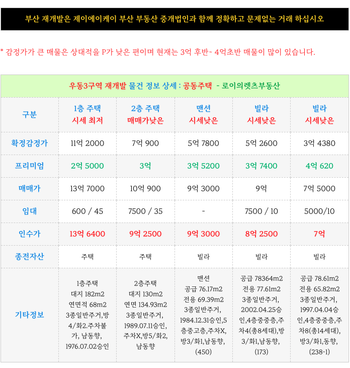 2. 현재 가능한 최저 P 매물 소개 : 우동3구역 재개발 :