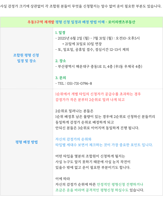 5. 조합원 분양 신청 일정, 방법, 포인트 : 우동3구역 재개발 :
