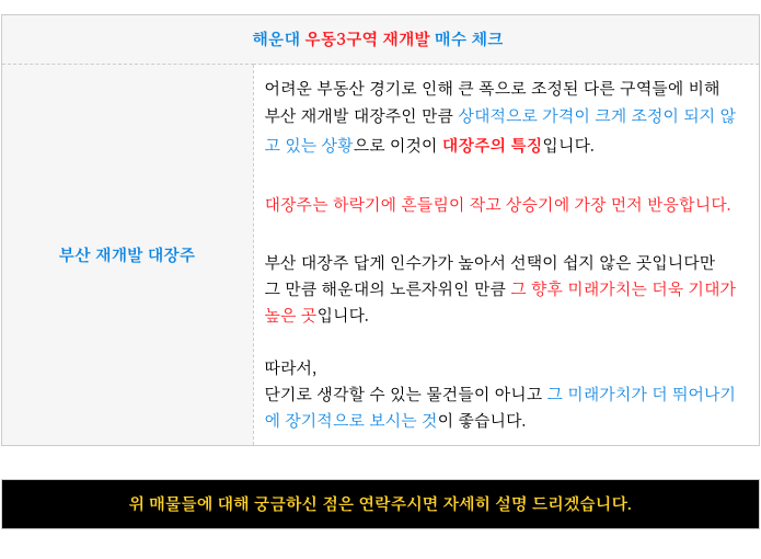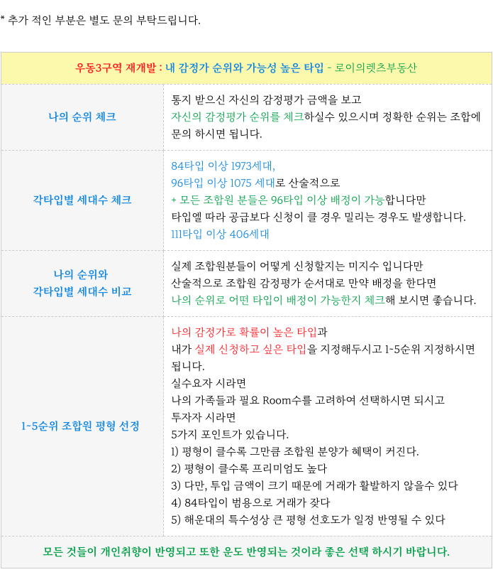 (대장주) 우동3구역 재개발 : 조합원 분양시청 일정 연장 + 순위 + 배정 등 & 현 최저 매물