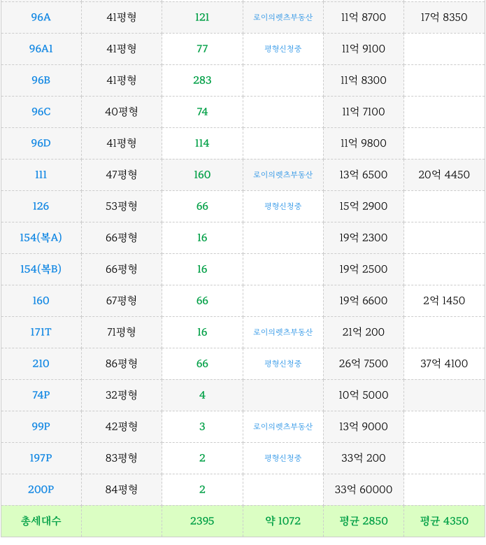 4. 타입별 세대수, 분양가 체크 : 우동3구역 재개발 :