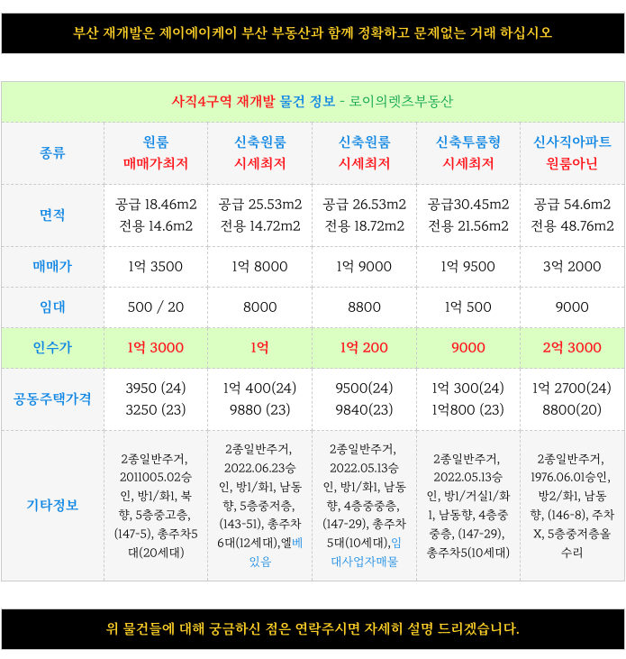 부산 전역 재개발에 대해 궁금하신 사항은 방문 또는 연락주시면 자세히 설명 드리겠습니다.