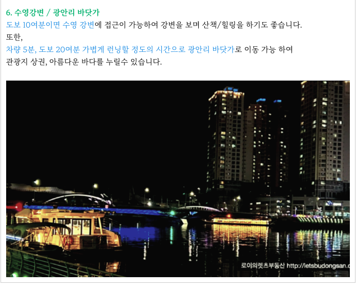 그리고, 인접한 광안대교와 원동IC를 통해 시내외로의 이동 역시 좋습니다.
