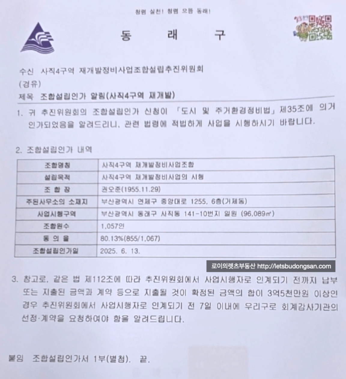 | 사직4구역 재개발 : 조합설립인가 소식과 이후 일정 그리고 소액 매물 (5) | 2025.06.23 |