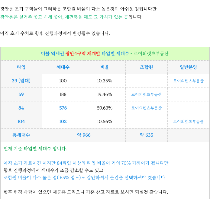 4. 광안4구역 재개발 : 타입별 세대수 :