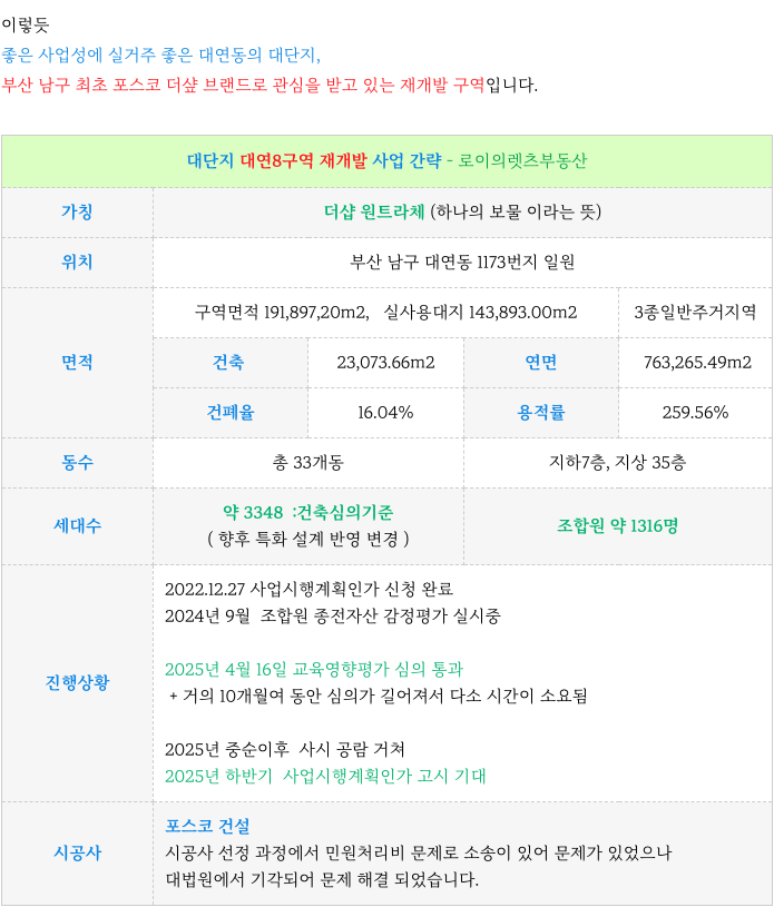 대연8구역 재개발 : 현재까지 진행 사항 & 예상 일정 체크 : 등 추가 정보는 아래 페이지를 참고 부탁드립니다.