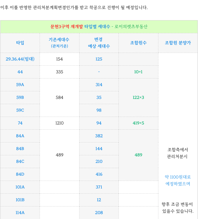 조합원 분들은 모두 84타이상 배정이 가능해 보입니다.