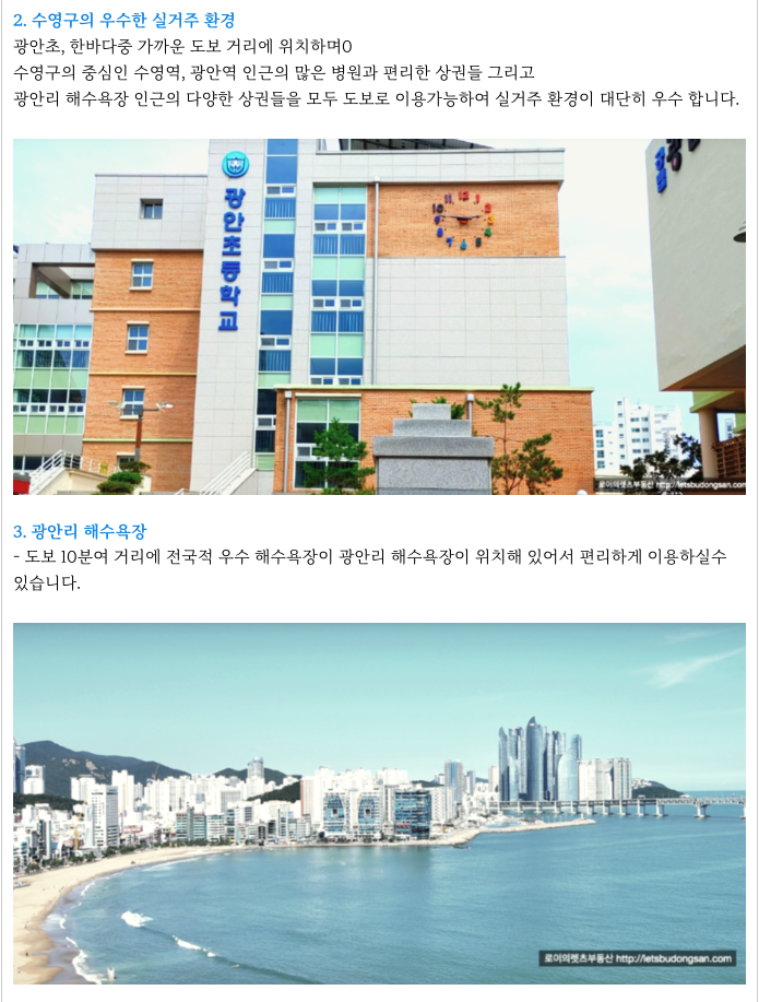 - 수영구 중심 광안동, 광안리 해수욕장, 주변시세 높은