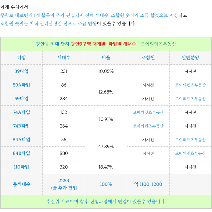 광안동의 최대 규모로 약 2250여 세대로 계획하고 있고