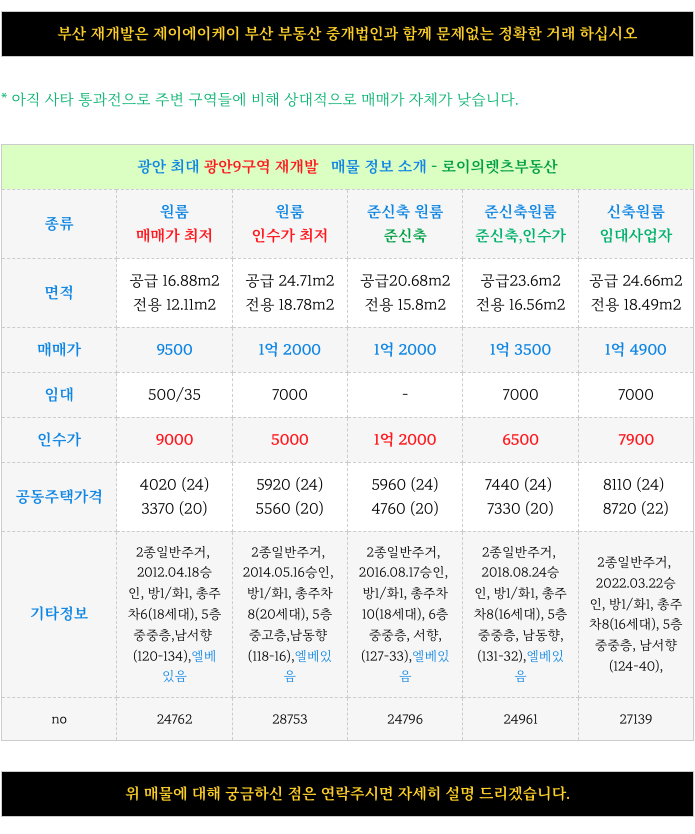광안9구역 재개발 : 소액 매물 소개해 드리겠습니다.