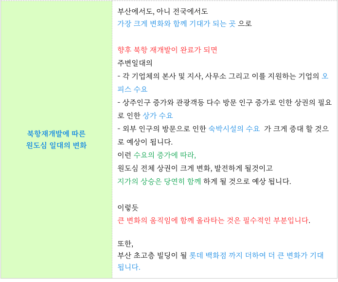 그럼, 북항재개발에 관해서도 간략 소개해 드리고 물건 소개해 드리겠습니다.