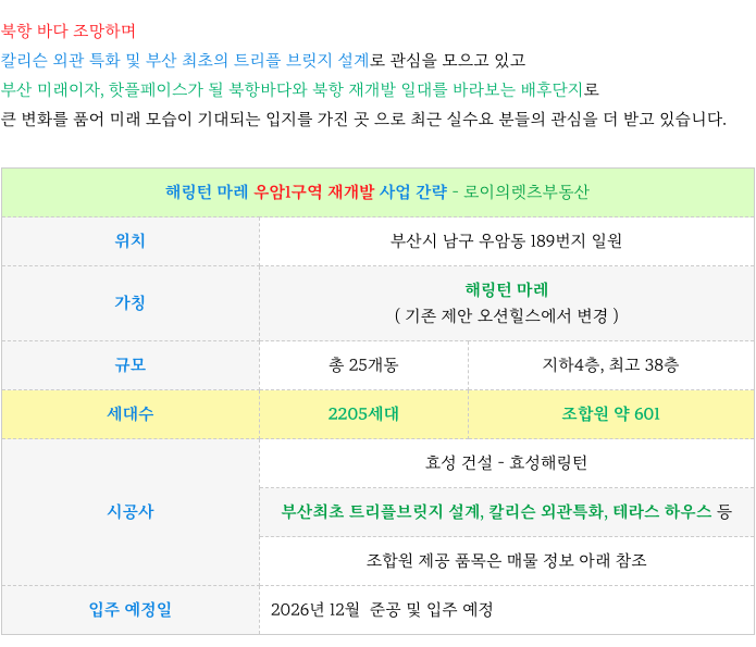 | 해링턴 마레 : 구역 특징 및 입지 그리고 각 타입별 조합원 매물 ( 우암1구역 ) (1) | 2025.05.21 |