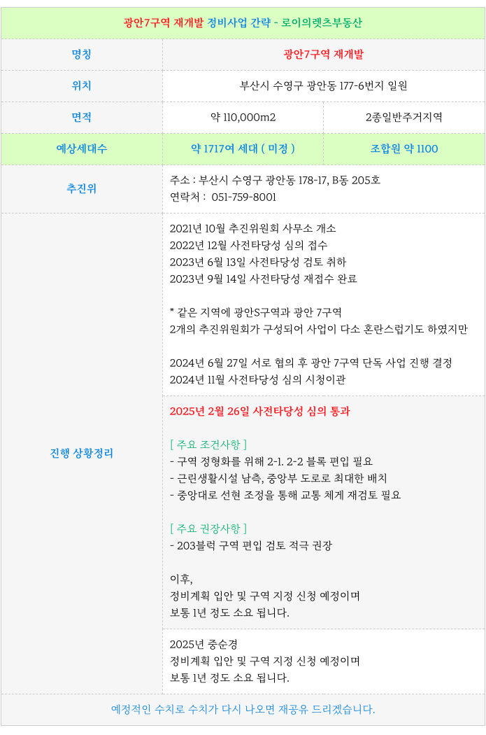 1. 광안7구역 재개발 : 사업 간략, 최근 진행 상황 :