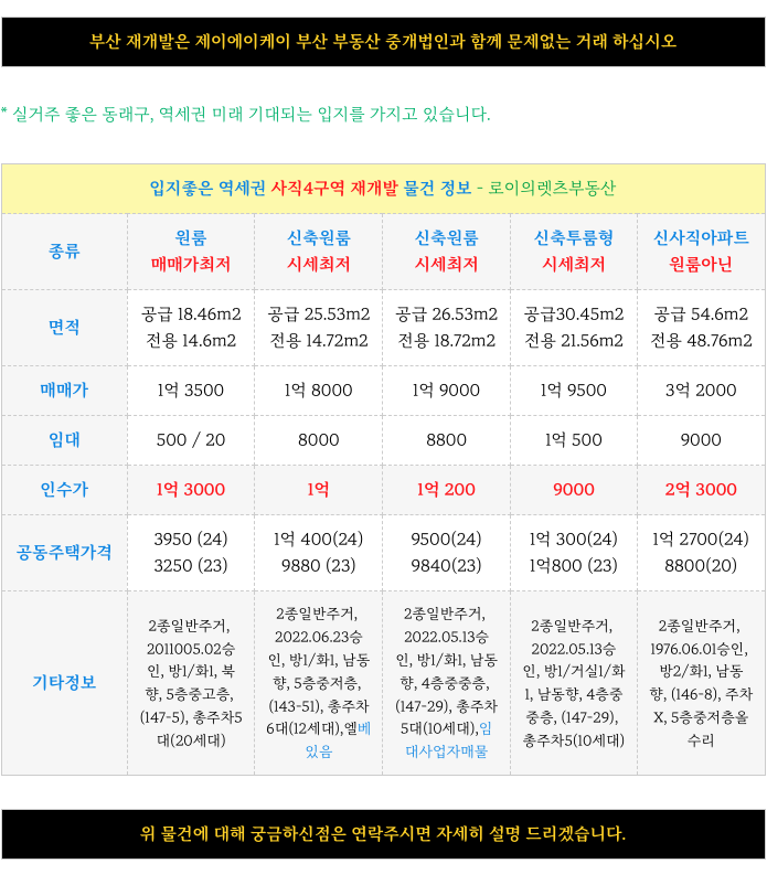 부산전역 재개발, 분양권, 상가, 주택 등 물건 투자 접수 받습니다.