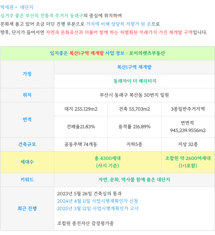 안녕하세요 로이의렛츠부동산 ( JAK 제이에이케이 부산 ) 입니다. 오늘은 동래구 대장 복산1구역 재개발...