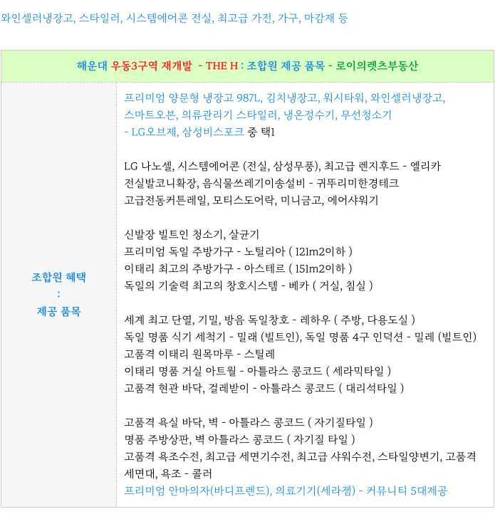 부산에서는 처음으로 프리미엄 브랜드 THE H 를 채택하여 선보이게 되었고