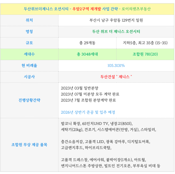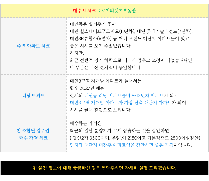 대연동 대장주 - [ 대연디아이엘 ] 대연3구역 재개발 : 입주권 매물 소개
