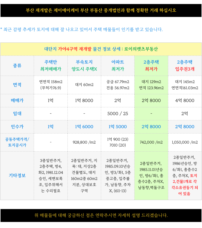 부산 경남 건물 토지 상가 주택 등 부동산 물건 투자 및 물건 접수 받습니다.