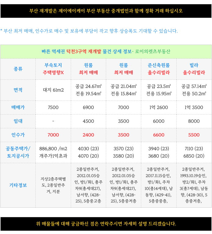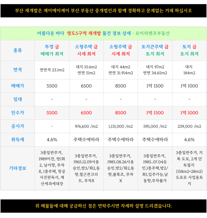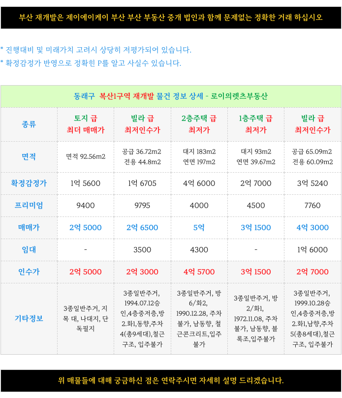 부산 전역 재개발에 대해 궁금하신 사항은 방문 또는 연락주시면 자세히 설명 드리겠습니다.